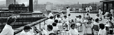 Photo: Sur le toit de l’usine d’emballage de Sandoz à Bâle, 1959. (Novartis AG)