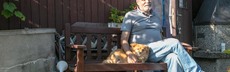 Meu cão e eu sentamos e observamos o que os outros estão fazendo."